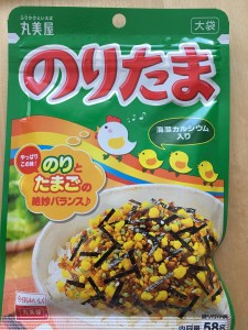 En rouge il est écrit : No Ri Ta Ma … Noritama . Aussi faut-il savoir qu’il s’agit d’un assaisonnement pour le riz à base de Seaweed et d’oeuf … ( merci à l’illustration )
