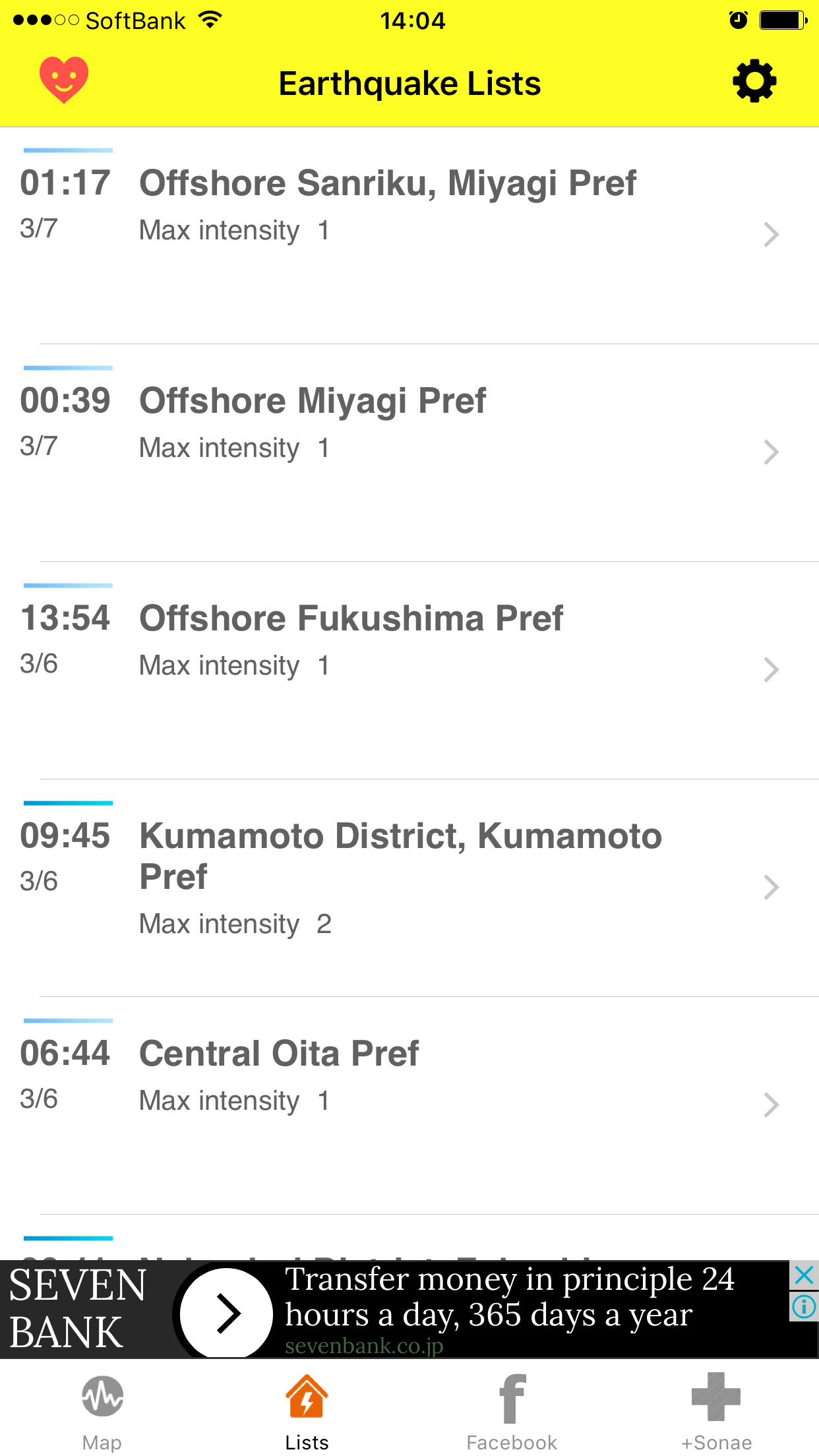 Les séismes du jour